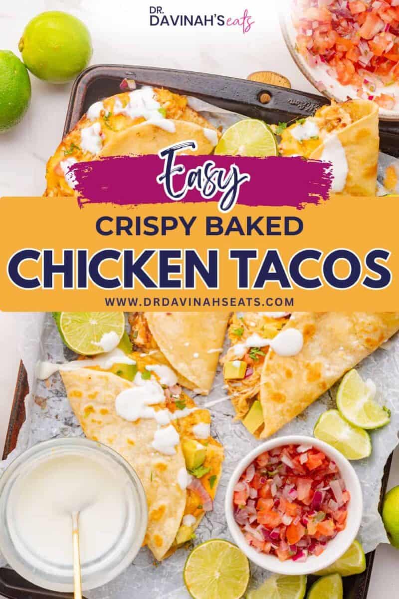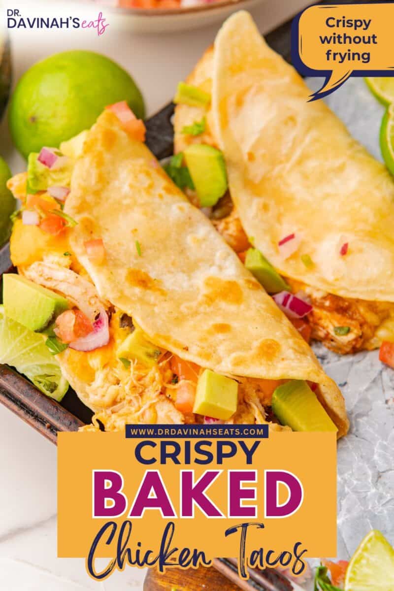 Crispy oven-baked chicken tacos with melted cheese and seasoned chicken