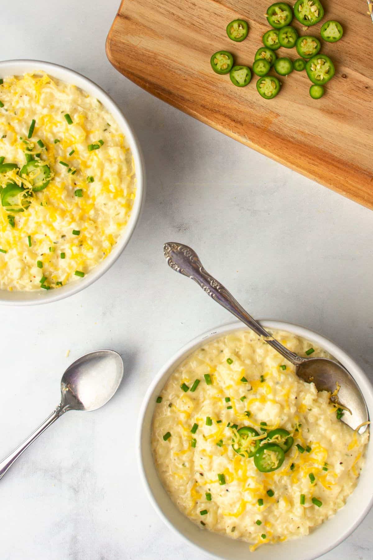 - For a shrimp and grits-style meal: Use these cheesy grits as the base for your Shrimp and Cheesy Cauliflower Grits.