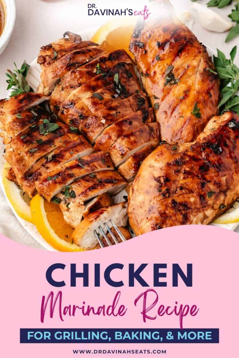 The best chicken marinade has a balance of oil, acid, sweetness, savory flavor, and seasoning. This recipe uses olive oil, citrus juice, honey, soy sauce, Dijon, garlic, and spices so the chicken tastes juicy and well-seasoned after cooking.