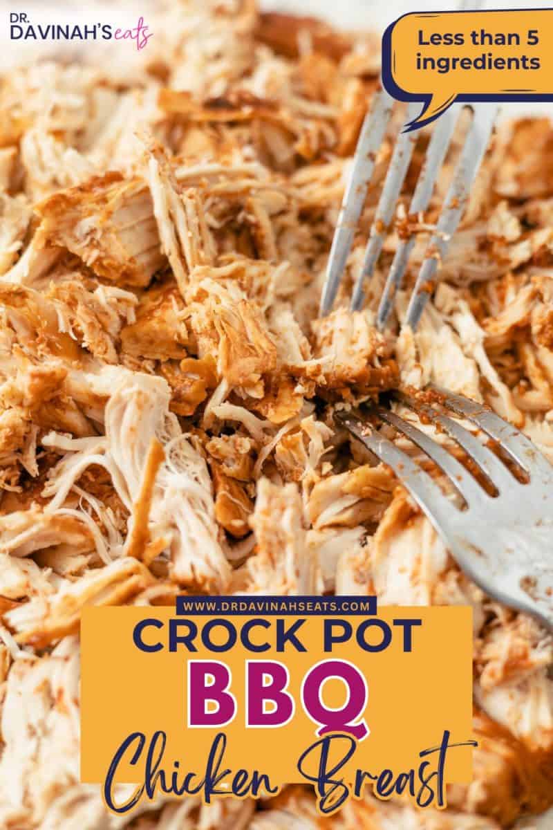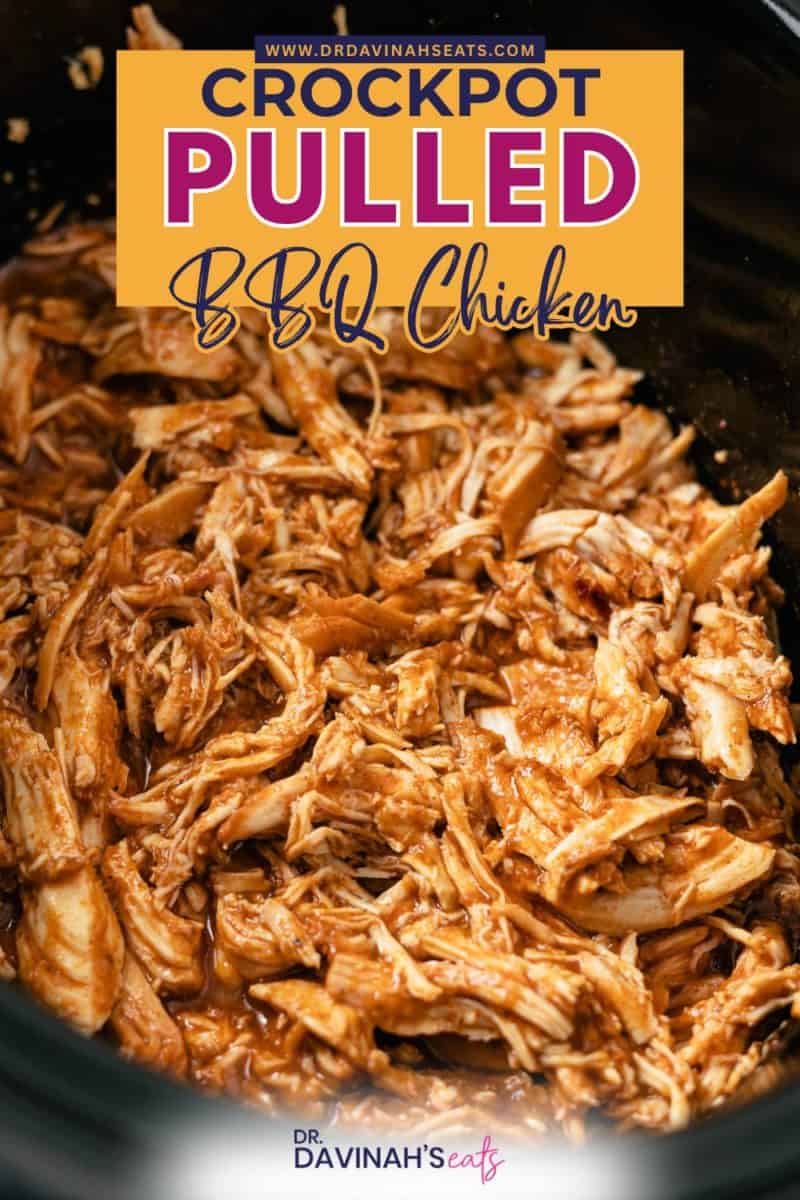 Just add your chicken to the crock pot, season lightly, and pour your favorite BBQ sauce over it. Cover and let it cook until the chicken is tender and easy to shred.