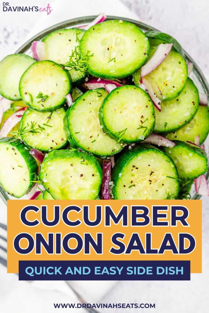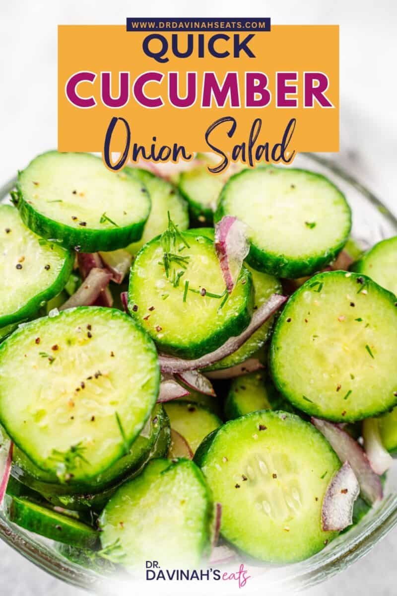 Bowl of cucumber onion salad with bright, fresh vegetables
