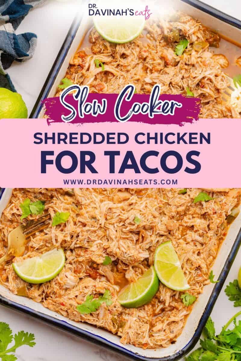 Serve this chicken in tortillas for tacos, over rice for bowls, or with chips and cheese for nachos. You can also add a simple salad, roasted vegetables, or your favorite taco toppings alongside it.